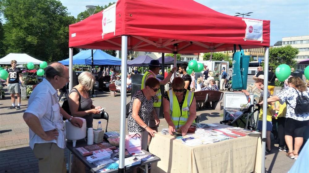 Yhdistyksemme osallistui myös tänä vuonna Porvoon Päiville. Jäsenhankintakampanjaa hoidettiin tänä vuonna isolla talkooporukalla. Saaliiksi saimme lähes 10 uutta jäsenhakemusta. Helteinen sää ei haitannut kampanjaa. Onneksi vesipiste oli lähellä, kun Porvoon Vesi jakoi tuotettaan kansalaisille. Kokoonnuimme varhain klo 9 aikaan Raatikymppiin, josta roudasimme teltan sekä mainostarvikkeet torin standille. Sopivat kahden tunnin vuorot hoituivat sovussa. Arpajaiset ja pikapalkinnot olivat kekseliäs keino houkutella asiakkaita juttusille. 14.00 aikaan purimme paikan ja kiikutimme teltan, pöydän ja tuolit takaisin.
